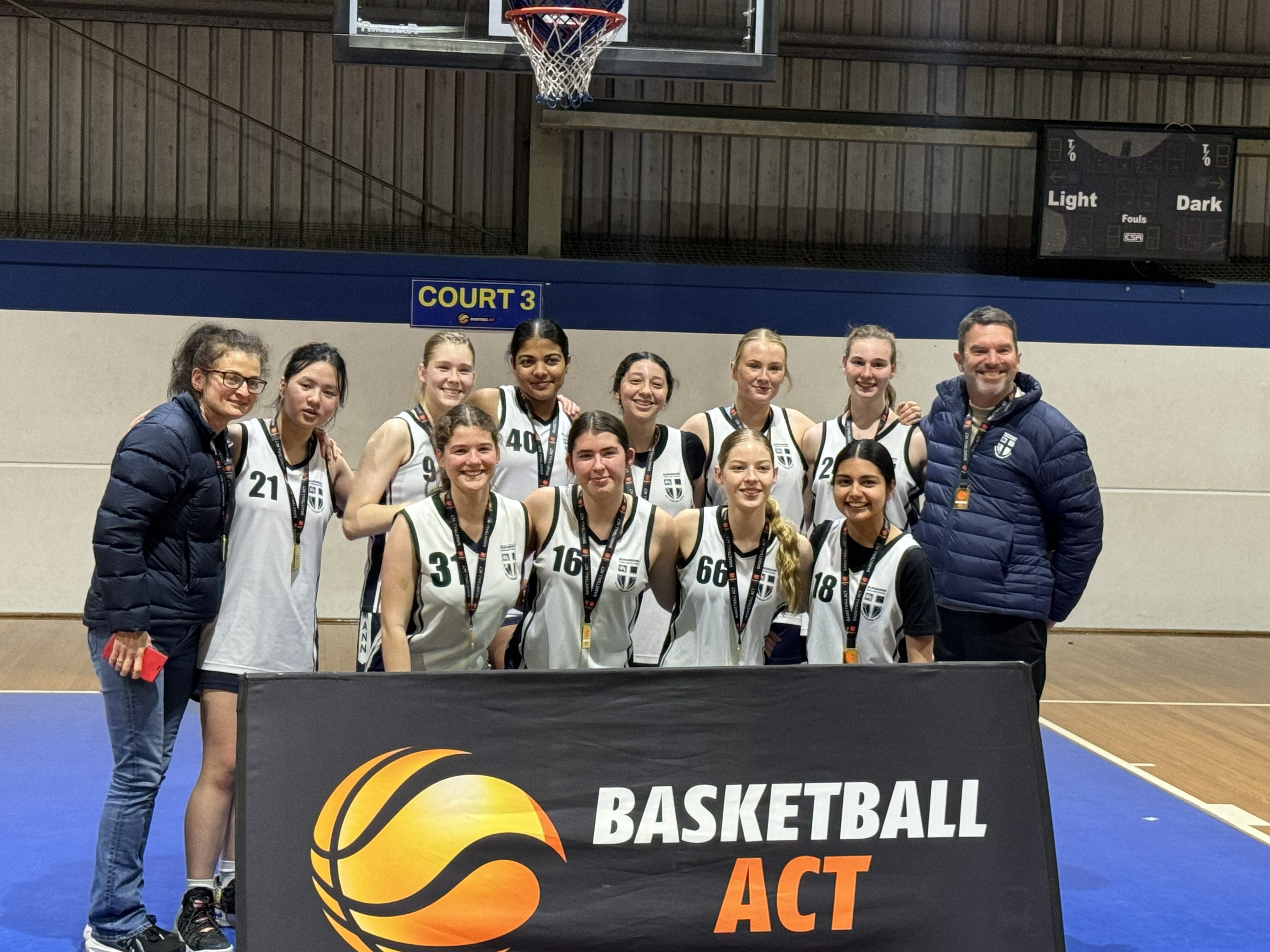Lana helped turn the game by shutting down Queanbeyan’s leading scorer and keeping her scoreless in the final term. With 40 seconds to go and three points down, we called a timeout and advanced the ball. In the huddle, Olivia volunteered to take the three point shot. We figured it was now or never. Madi ran a perfect decoy, freeing Olivia, who calmly made the shot to tie the game. I do not think I had jumped that high in 20 years.